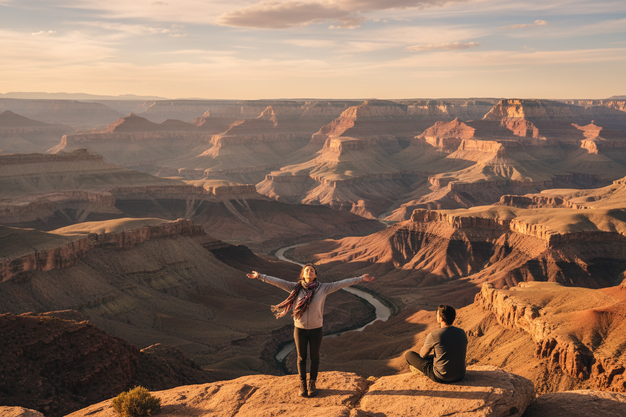 A traveler takes a quiet moment at Horseshoe Bend, where nature’s curves remind us to slow down and find peace in the journey.